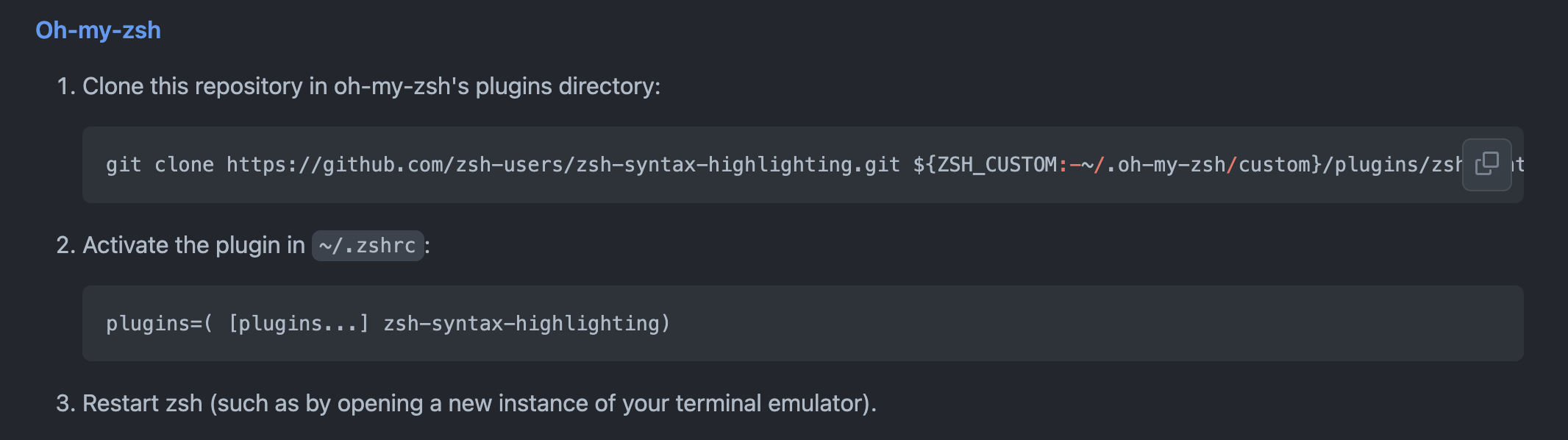 더불어 zsh를 그대로 사용하는 다른 이유가 생겼는데 바로 auto-suggestions, syntax-highlighting 때문이다.