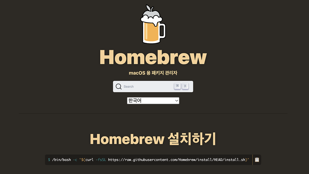 이것저것 설치할 것이 많으니 간단하게 설치할 수 있도록 Homebrew를 설치한다.