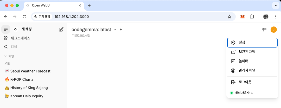 웹으로 접속해서 관리자 계정을 등록하고 설정메뉴에서 모델을 추가한다.
